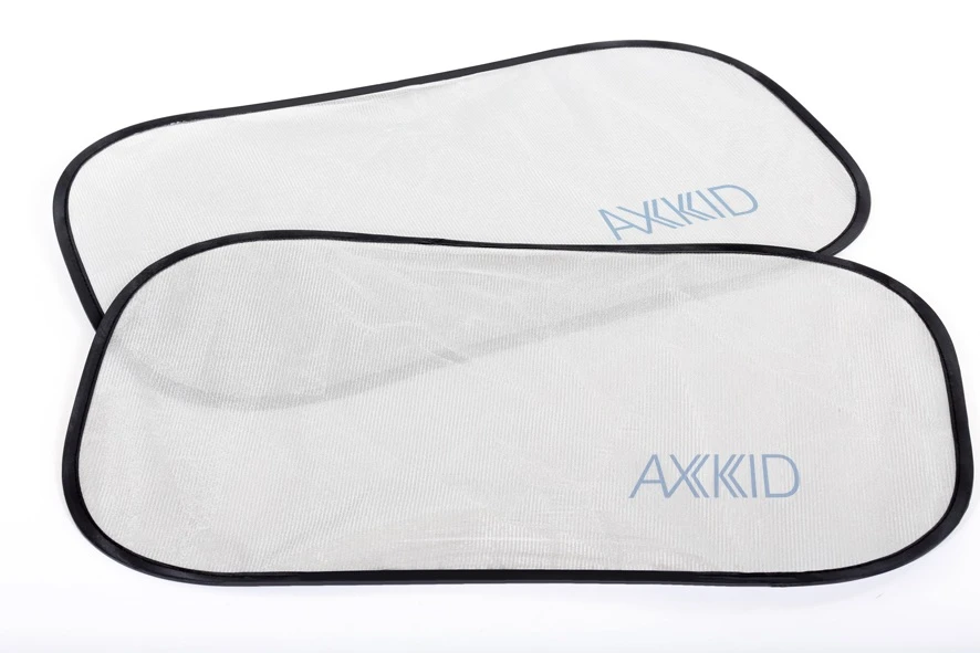 Pour protéger du soleil et de la chaleur, les pares-soleil électrostatiques d’Axkid s’installent sur les fenêtres de la voiture. Ils sont auto-adhésifs et se plient facilement pour être rangés.