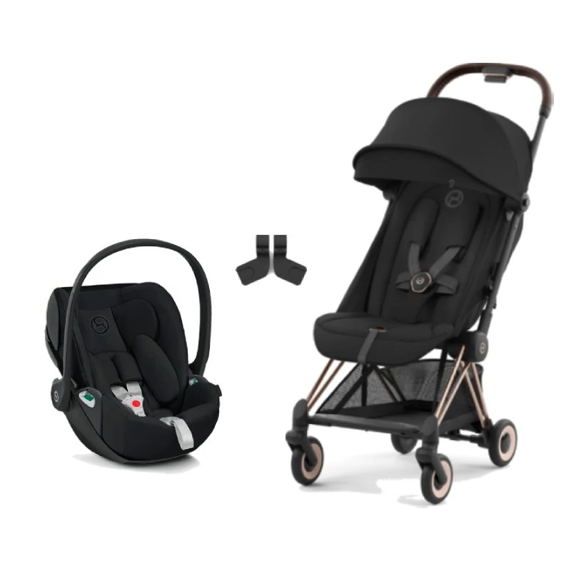 - Grâce au travel system, il est possible de clipser une coque auto Cybex primée sur le châssis de la poussette grâce aux adaptateurs inclus dans le pack.