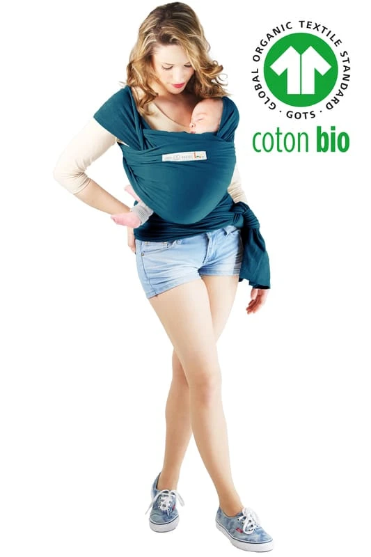 - Cette écharpe de portage est en coton bio avec de l’élasthanne. Ces matières sont certifiées Oeko-Tex et GOTS.