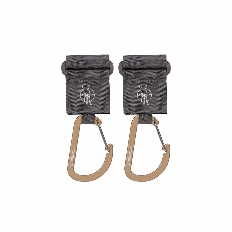 Les crochets en métal de LÄSSIG sont polyvalents grâce à leurs mousquetons et leur bande auto-agrippante.