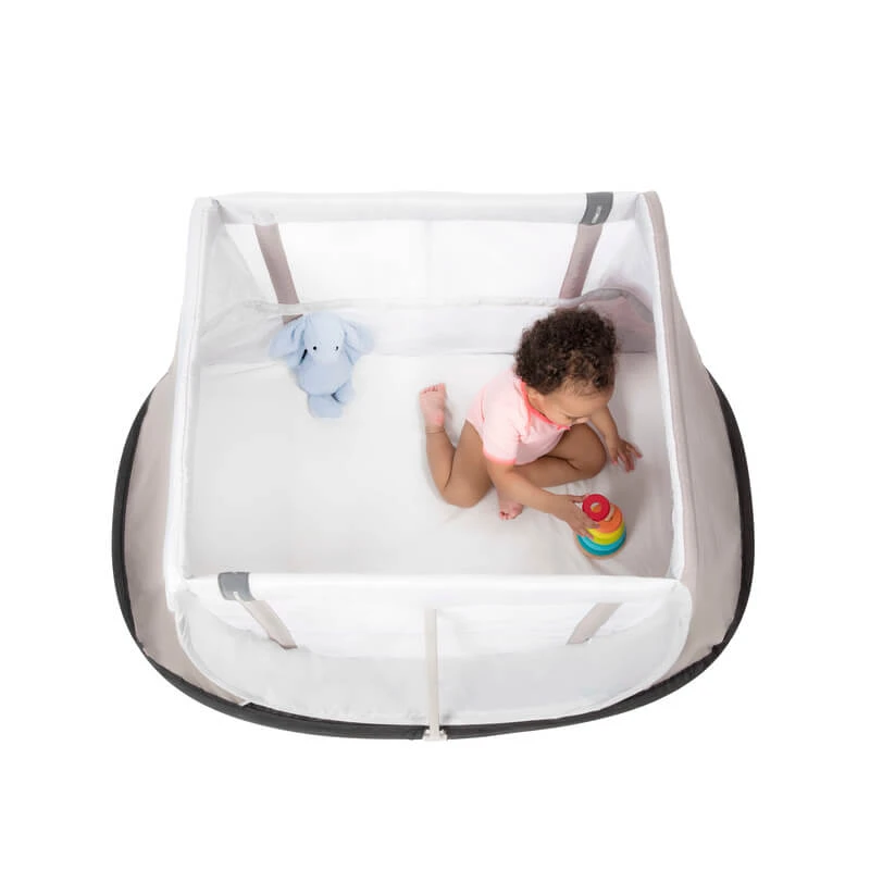 Le lit de voyage pliant Instant d’Aeromoov se met en place et se range en quelques secondes seulement.