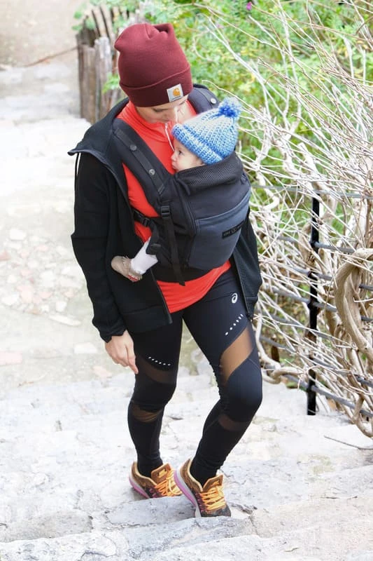 - Le porte-bébé inclut un tablier qui protège votre enfant du froid. Quand l’été arrive, vous pouvez détacher ce tablier pour laisser place à l’insert en tissu mesh respirant.