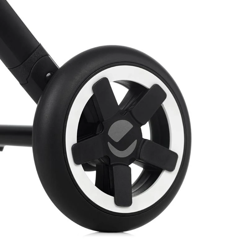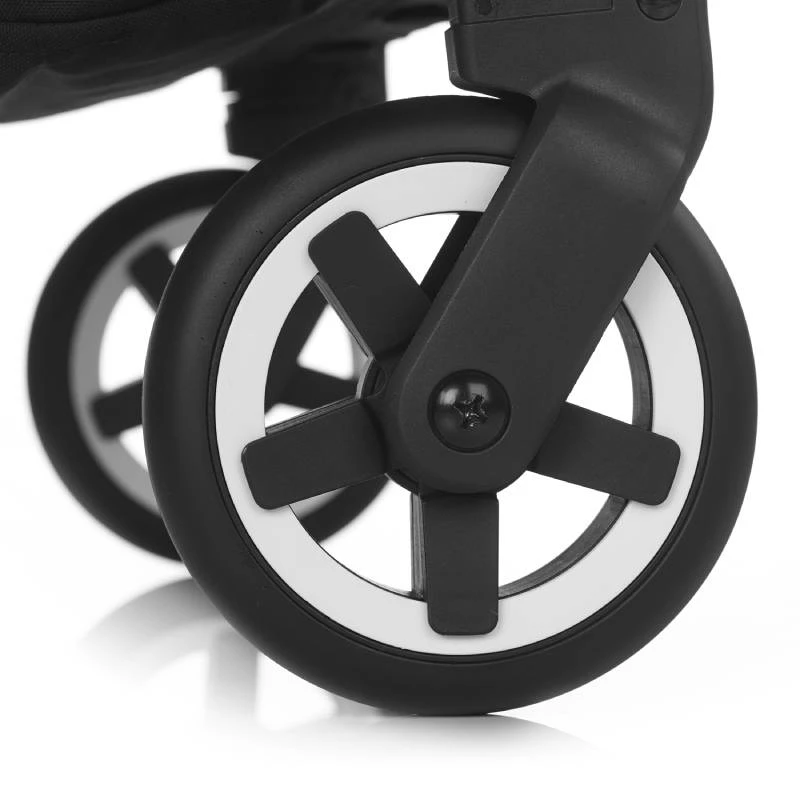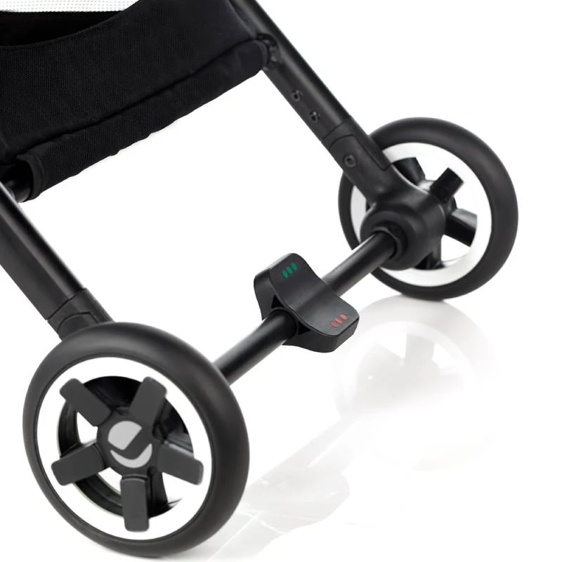 Facile à conduire d’une seule main, elle est équipée de roues dotées de pneus hydro PU et de suspensions à l’avant comme à l’arrière.