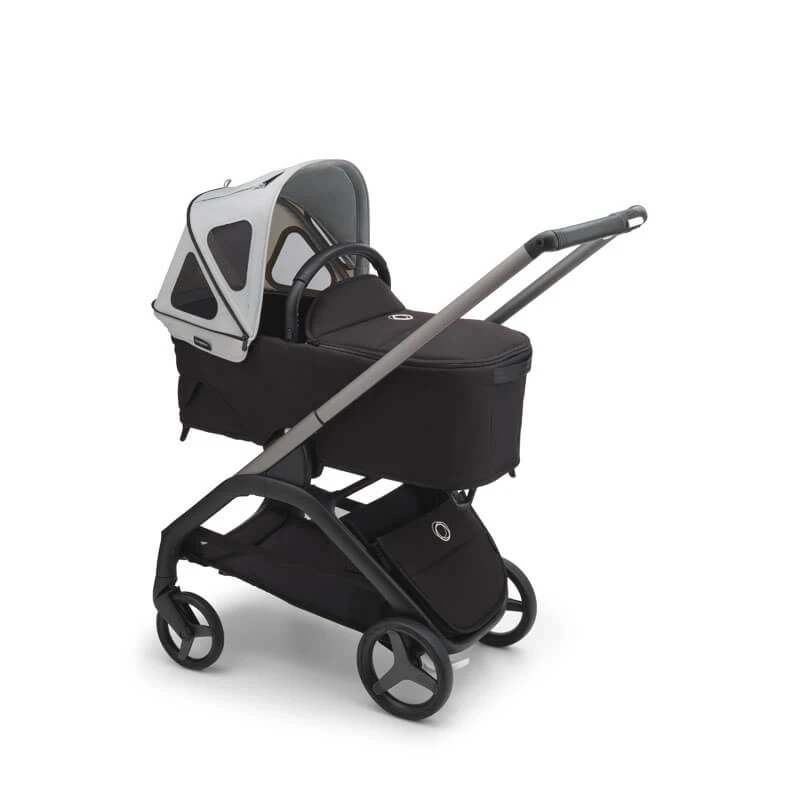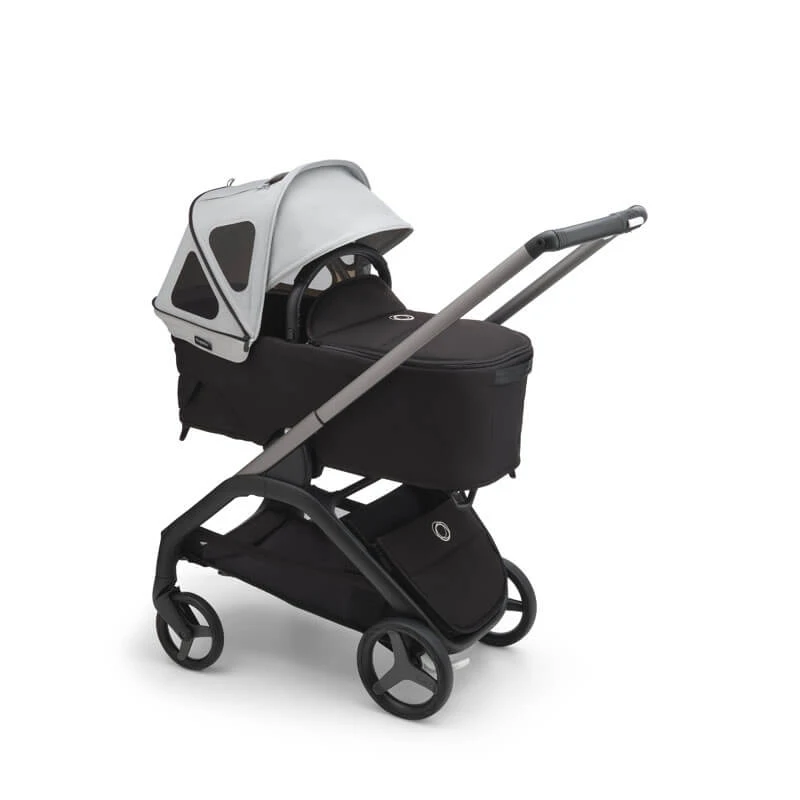 - La capote se positionne sur le siège de la poussette Dragonfly mais également sur la nacelle pour une utilisation modulaire.