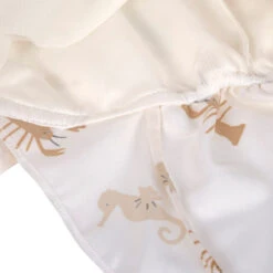 Le chapeau de soleil protège-nuque Animaux de la mer blanc cassé de Lassig protège la tête des bébés grâce à son indice de protection UV de 80.