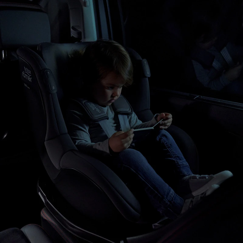 - Innovant, le Dualfix iSense dispose d’un éclairage d’ambiance intérieure qui rassure votre enfant lors de voyages avec une faible luminosité et vous permet de le surveiller. Elle vous permet même temps de fixer correctement le harnais de sécurité du siège-auto quand il fait sombre.