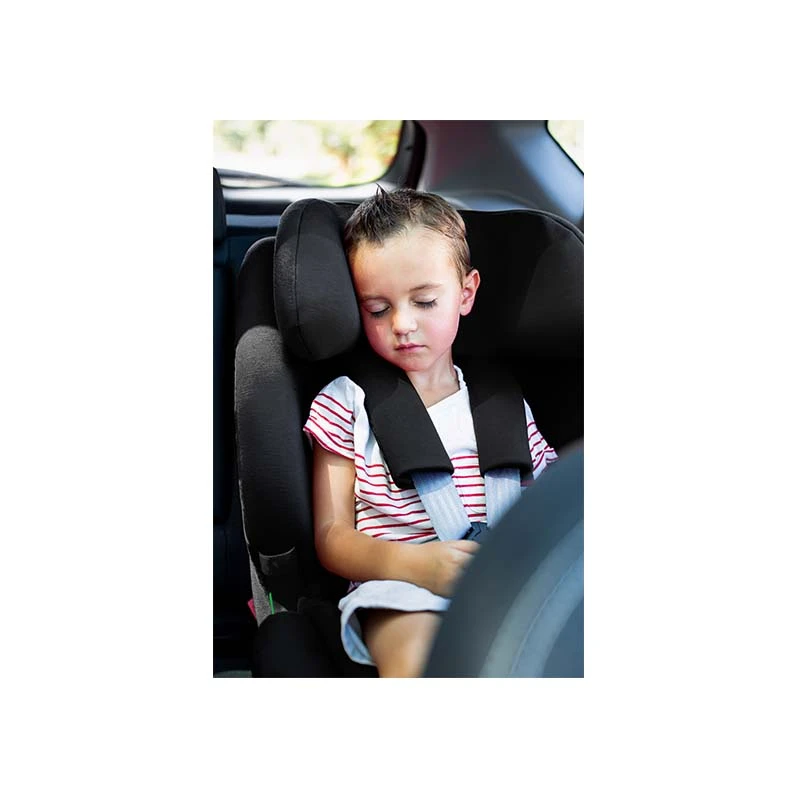 - Il est pourvu de connecteurs Isofix et d’une sangle top tether pour garantir une fixation parfaite au siège de la voiture.