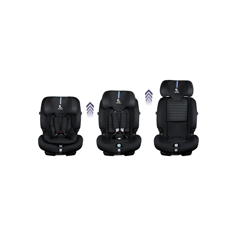 - De 100 à 150 cm : le siège-auto peut être utilisé comme un simple réhausseur grâce à son harnais escamotable, et l’enfant peut alors être attaché avec la ceinture de sécurité 3 points du véhicule.