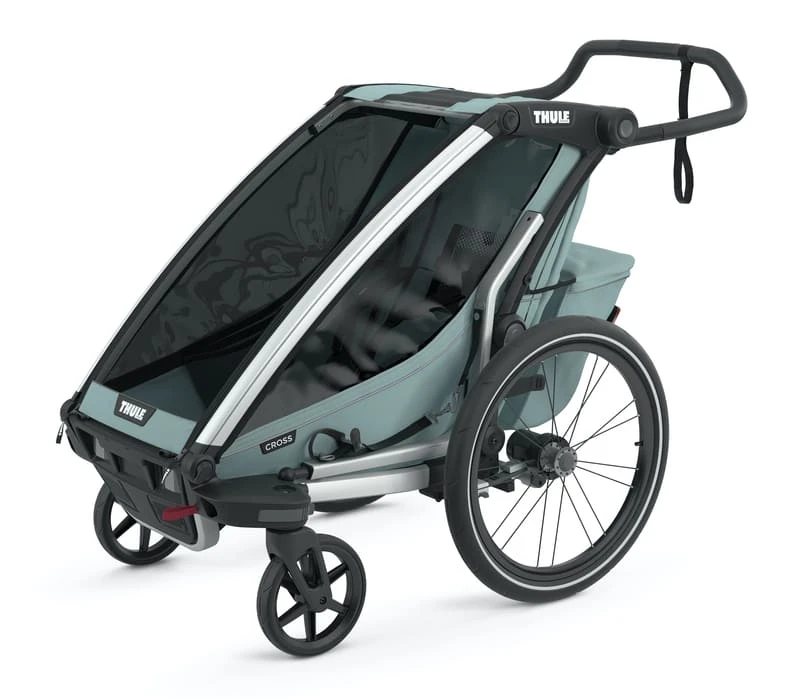 Le chariot à vélo Cross de Thule est parfait pour permettre aux parents sportifs de profiter des activités en plein air avec leur enfant.